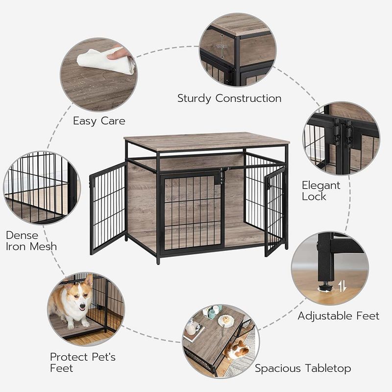 أثاث قفص الكلب ، طاولة جانبية بنهاية قفص الكلب الخشبي ، بيوت الكلاب مع 3 أبواب داخلية ، قفص شبكي للحيوانات الأليفة بنمط زخرفي كبير