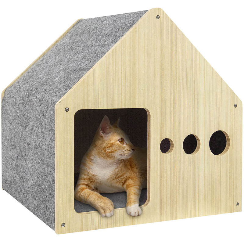 أثاث خشبي للحيوانات الأليفة يوفر سرير خيمة فضلات القطط الخشبي بتصميمه الأنيق وسطح السرير المريح تجربة استراحة ممتازة لقطتك.سواء في المنزل أو في متجر الحيوانات الأليفة ، فإن سرير الخيمة هذا هو مكان خاص للقطط للاستمتاع بكل لحظة في راحة وسلام.في الوقت نفسه ، يمكن أن يرضي التصميم الذي يشبه الخيمة أيضًا حب القطة للمساحة الخاصة ، حتى يتمكنوا من الاستمتاع بإحساس بالأمان والانتماء إليها.
