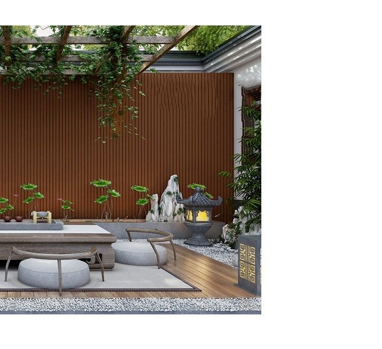 الأسوار والجدران الفاصلة: يمكن استخدام الكسوة الخشبية الخارجية لتزيين الأسوار والجدران الفاصلة ، مما يزيد من جمال السياج وخصوصية الجدار الفاصل.في الوقت نفسه ، يسهل تصميم الشبكة التهوية واختراق الضوء.