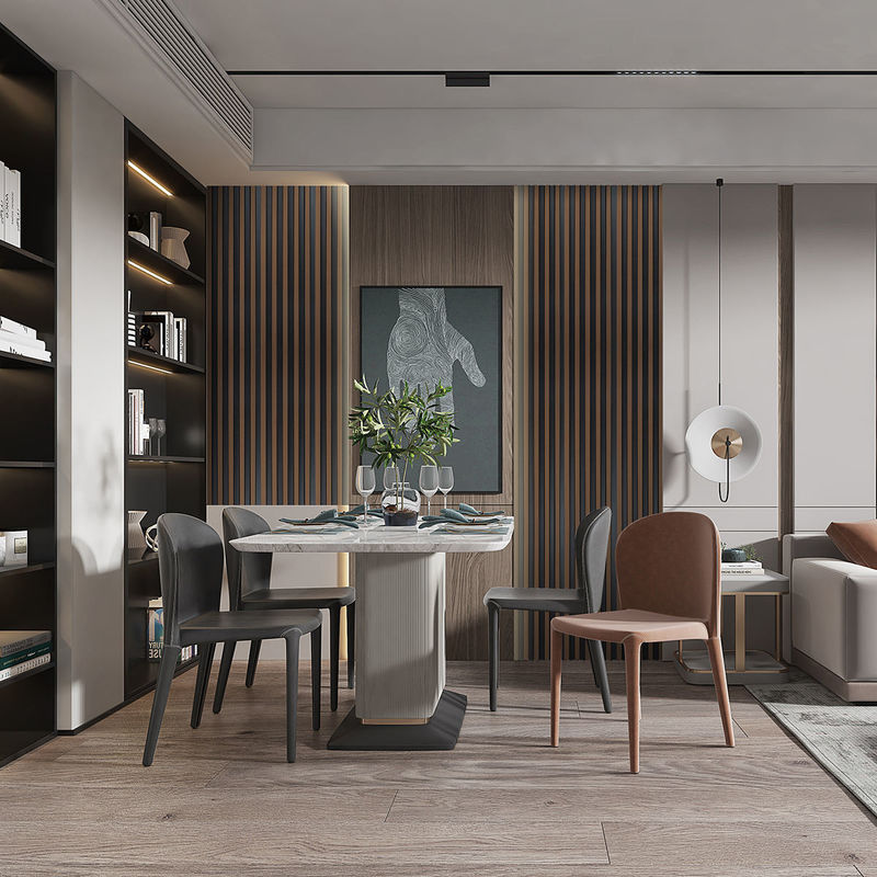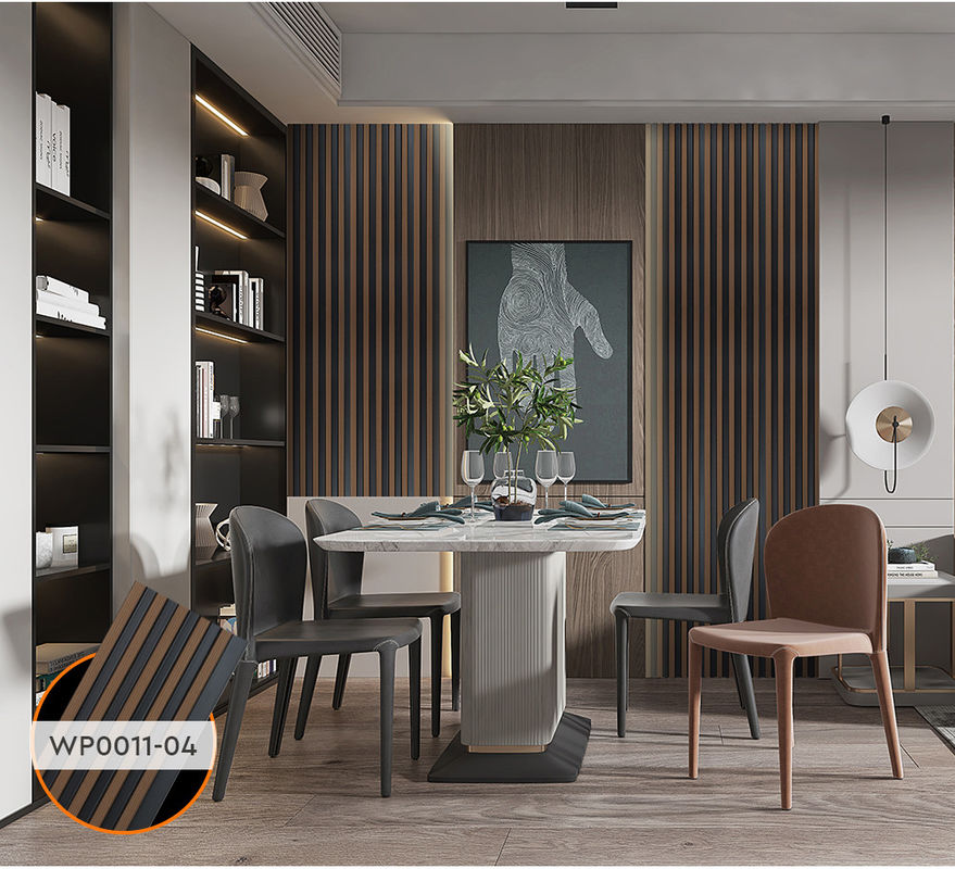 ديكور غرفة الطعام والمطبخ: لوحات الحائط PS WPC 3D مناسبة أيضًا لغرفة الطعام وديكور المطبخ.خصائصها الصديقة للبيئة وأسطحها سهلة التنظيف تجعلها مثالية لغرفة الطعام وديكور المطبخ.