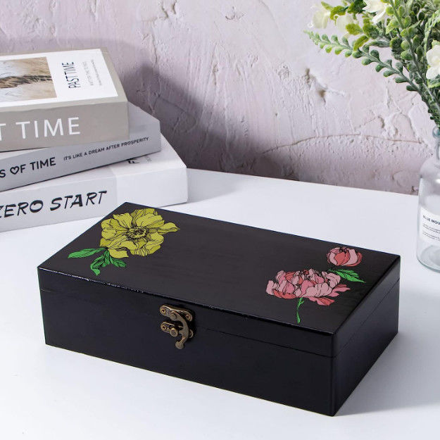 صندوق تخزين خشبي أسود مستطيل مع غطاء مفصلي 9.7x5.5x2.7 بوصة 0صندوق تخزين خشبي أسود مستطيل مع غطاء مفصلي 9.7x5.5x2.7 بوصة 1