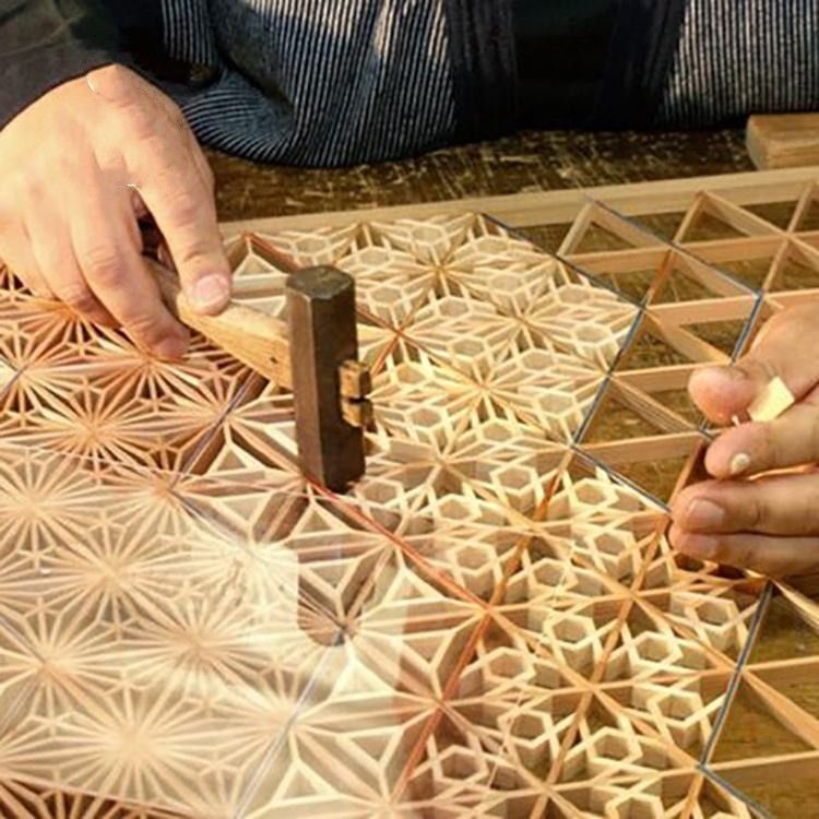 الحرفية الجماعية هي تقنية النجارة التقليدية التي تتضمن تجميع الخشب في أنماط هندسية دون استخدام المسامير.هذه تقنية دقيقة تتضمن حفر ثقوب وحفرها وحفرها في الخشب المنشور الرقيق ، ثم تجميعها واحدة تلو الأخرى باستخدام مستوي أو منشار أو إزميل.يتم التعبير عن الأنماط الهندسية بوضع قطع خشبية صغيرة تسمى "الأوراق" في شبكات مختلفة الشكل.